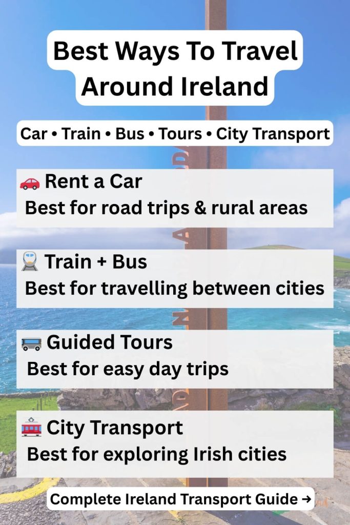 If you plan to explore Ireland without driving, you can read my full guide to getting around Ireland without a car, which covers detailed routes, itinerary ideas, and practical tips for navigating the country using public transport.