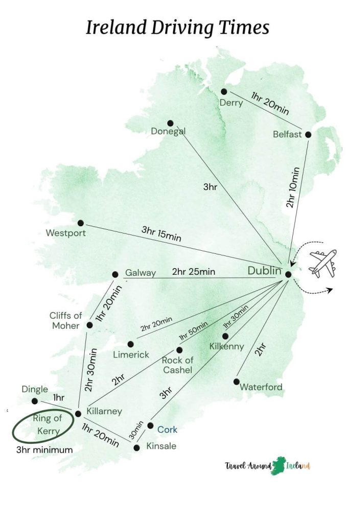 Ireland might look small on a map but looks can be deceiving. Travel in Ireland takes time, especially once you leave the motorways and start exploring coastal routes, rural roads, and scenic drives.